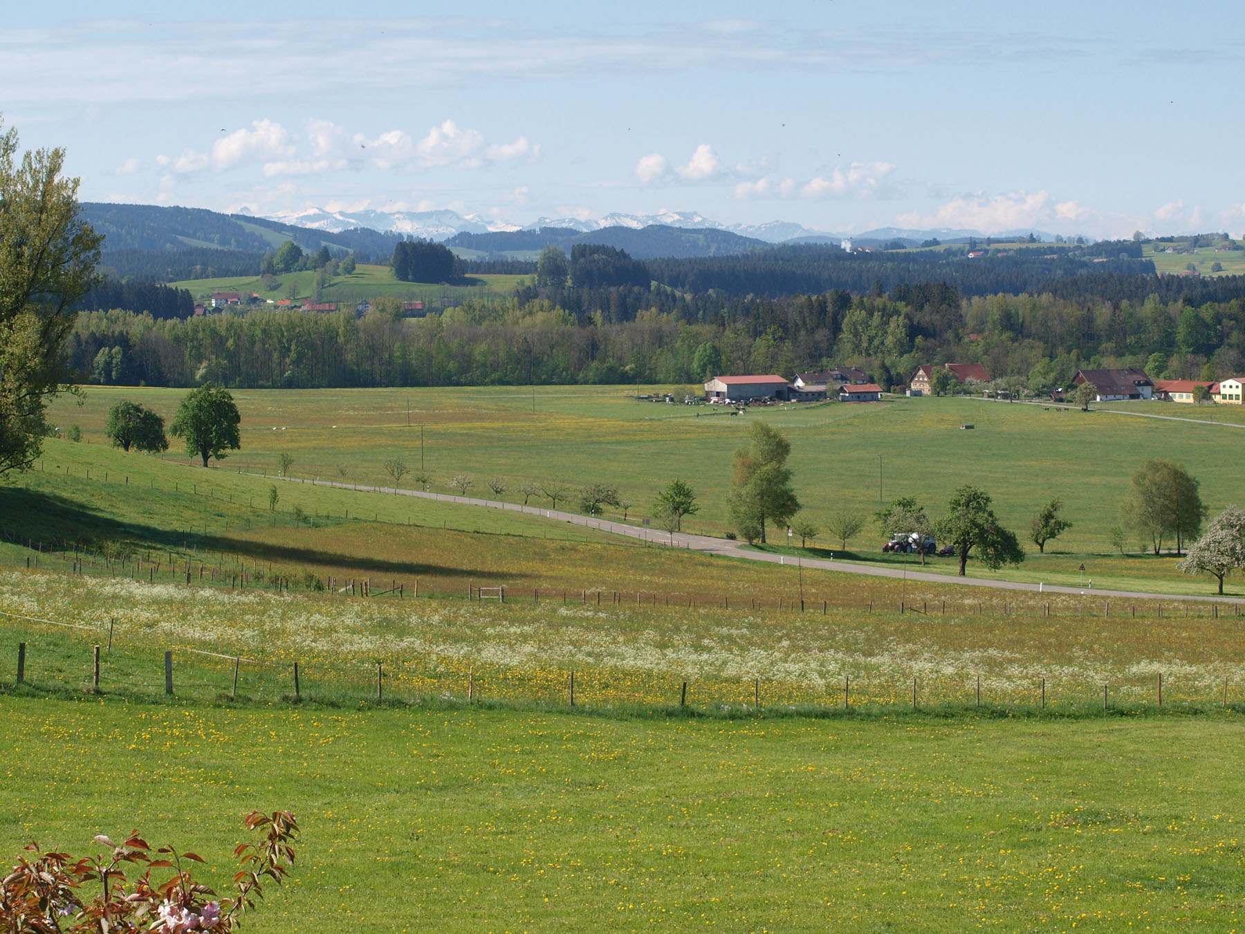 auf dem Schleifertobelhof, einem typischen Allgäuer Ferienhof, einmalig schön gelegen in Südhanglage, absolut ruhig direkt am Wald in 750 m Höhe. (Alleinlage) Auf unserem Ferienhof leben 3 Generationen mit vielen Tieren, Rindern - welche im Sommer auf die Weide dürfen- Enten, Hasen und Meerschweinchen und ganz lieben Katzen. Der Hof wird im Einklang mit der Natur nach Biolandrichtlinien von unserem Pächter bewirtschaftet. Bei uns genießen Sie die Ruhe, den weiten Blick in die Allgäuer Landschaft bis zu den österreichischen und schweizer Alpen.