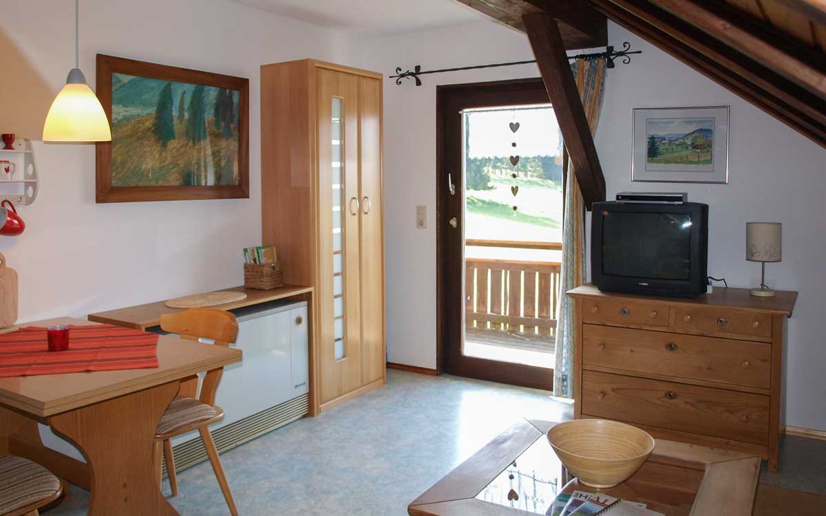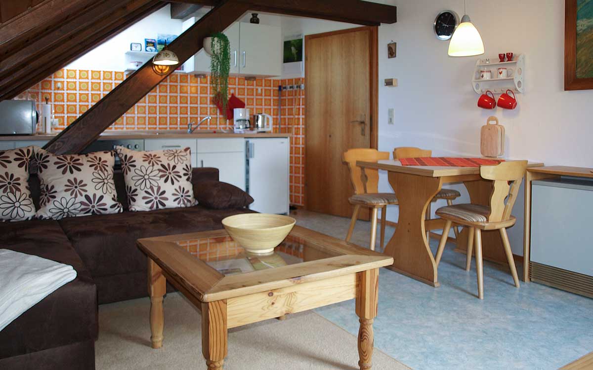 Unsere zwei Wohnungen Schwalbennest F *** ( 40 m²) und Sonnenstüble F *** (50 m²) befinden sich in einem separatem Haus und können bei Bedarf auch gemeinsam vermietet werden. Beide Wohnungen sind in sich abgeschlossen und komplett eingerichtet. Sie verfügen über kostenfreies W-LAN, Sat-TV, Geschirr, Bettwäsche und Kleinkinderausstattung mit Kinderbetten. Jede Wohnung hat entweder einen Balkon oder Terrasse. Großer Spielplatz für Kinder, Grillplatz und Autoabstellplätze stehen ebenfalls direkt am Haus zur Verfügung.