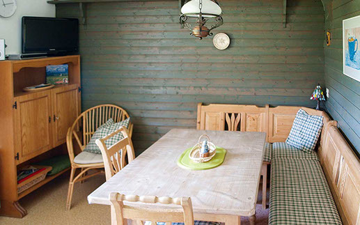 Die Wohnküche ist mit einer Küchenzeile und gemütlicher Eckbank, SAT-TV und W-LAN ausgestattet. Dusche und WC sind getrennt. Die Terrasse auf der Südseite ist ruhig und schön zur freien Wiese gelegen.